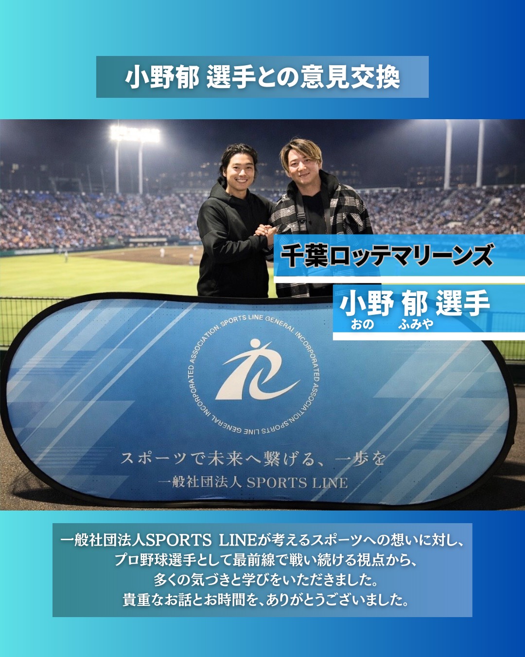 今後も一般社団法人SPORT LINEは小野郁選手を応援して行きます✨